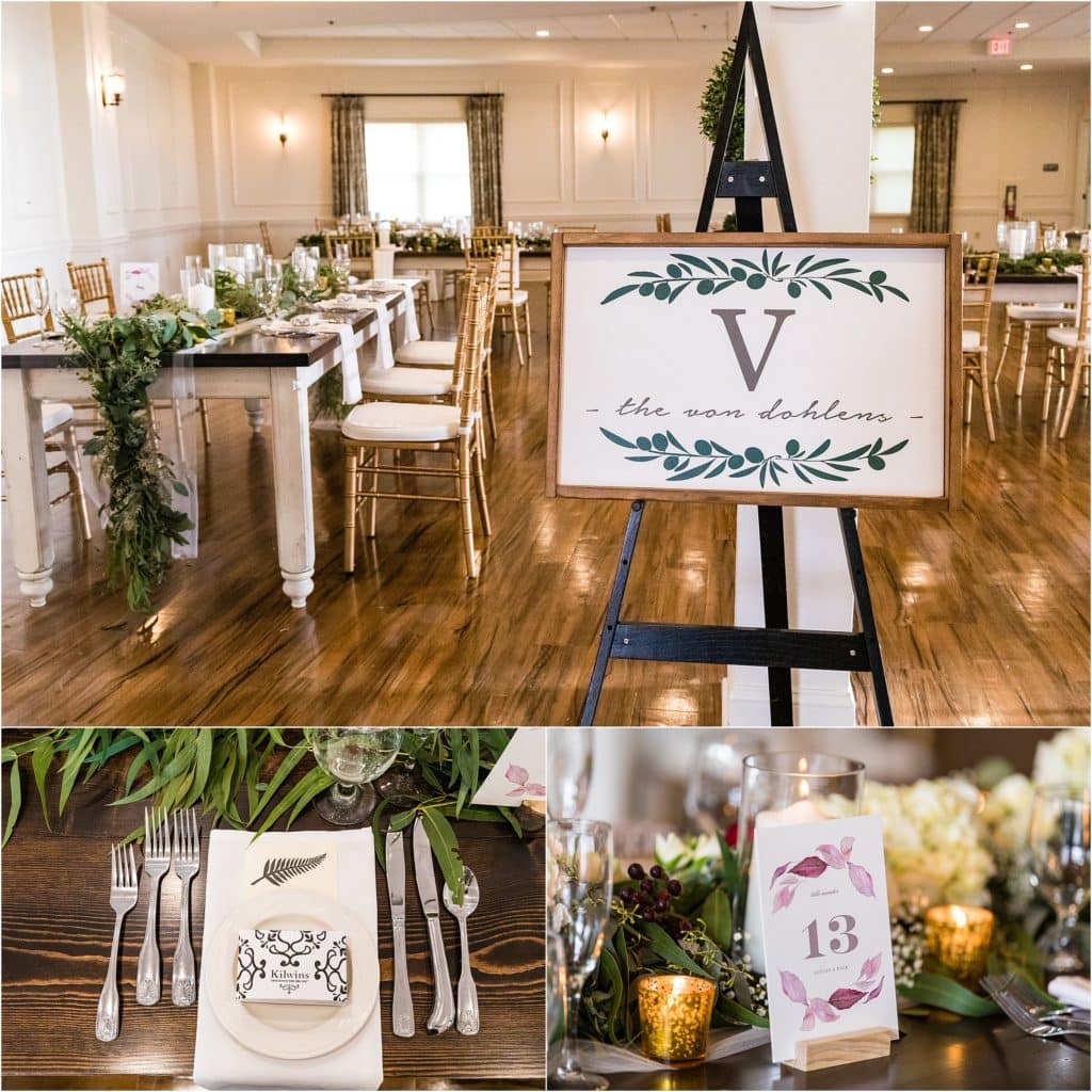We couldn’t have had a more beautiful day or a lovelier setting for their celebration. The ballroom area of The Farmhouse at People’s Light was full of beautiful greenery vines and florals that spanned the farmhouse tables. Throughout the space, Ashley & Nick personalized the room with customized signage, cookies for favors, albums made of their engagement photos, and more.