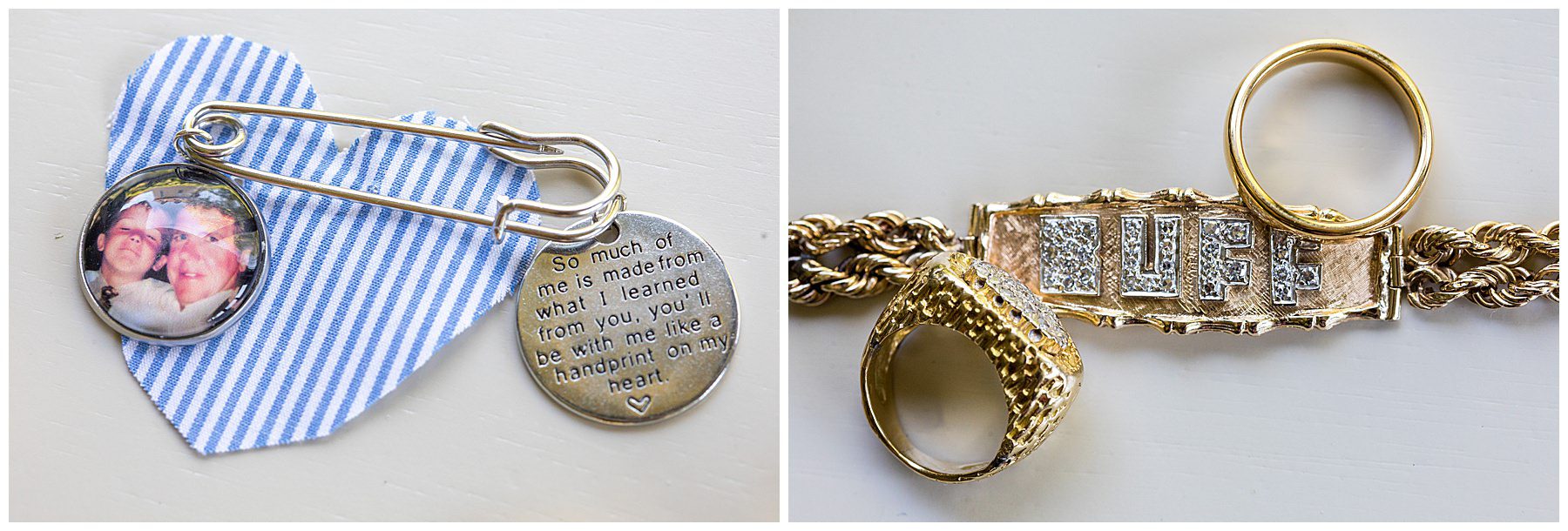 Her mom was nearby to help with getting her dressed, and it fit like a dream. Then it was time for a first look with her dad. He was speechless. They had a beautiful moment together, and she gave him a gift to help him along with the day.