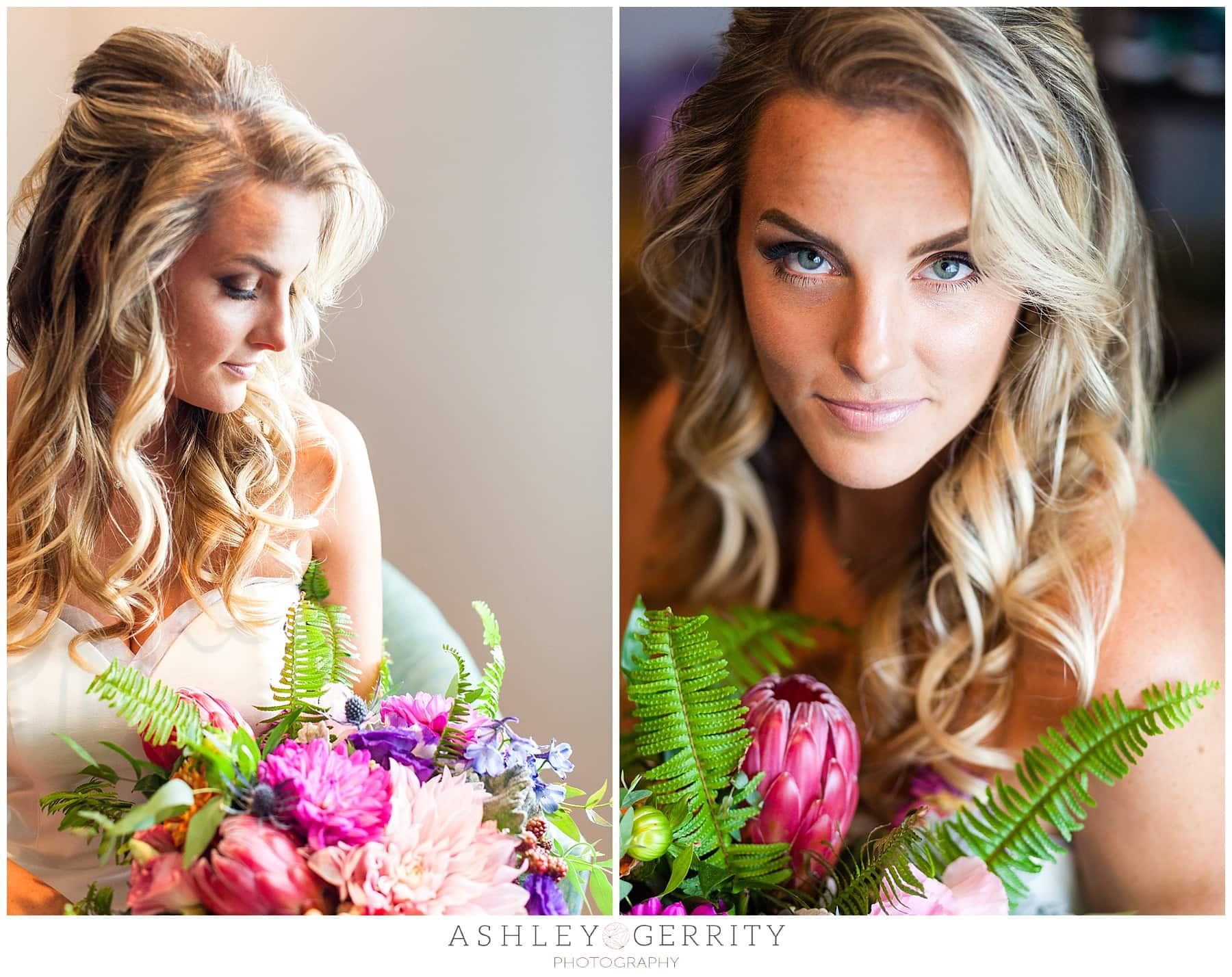 When Rachel arrived at Cathleen’s, the bridesmaids were all ready to go and Cathleen had all her gorgeous details out and ready for their moment in the spotlight. It perfectly complemented the elegant and understated wedding dress. Her bouquet by Fiori by Stephanie was full of vibrant hues and rich textures. It was the perfect complement to the customized wedding gown, sewn by the talented Angie Sacks – a former broadway costume designer. As she slipped into it, she transformed from nervous fiancé to graceful and gorgeous bride. The moment had arrived, it was time.