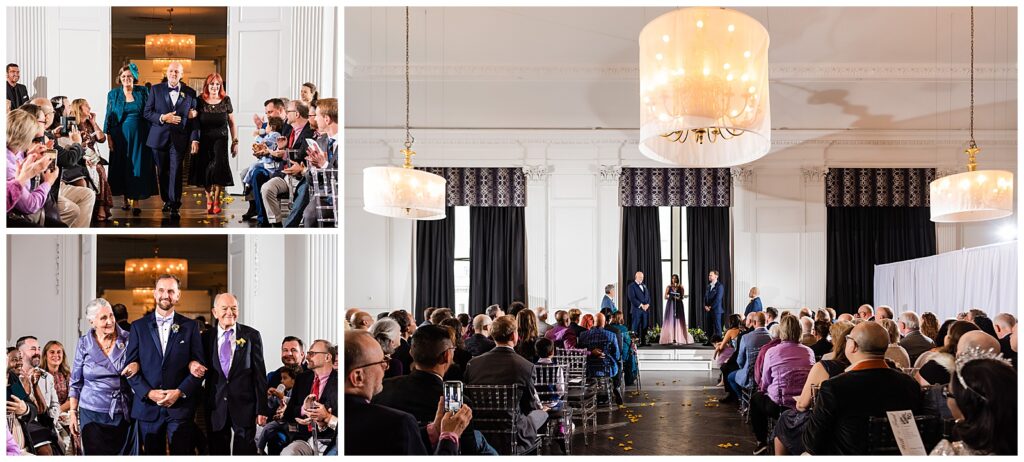 With the ceremony set to begin in DTC’s beautiful ballroom, the flower children rode down the aisle Will-style on a beautiful bike with a basket in the back for the littlest. The aisle now peppered with petals for Fred with his accompanying sisters and Will with each of his parents to walk down. The sweet ceremony was officiated by their former roommate, Asha, who got to witness their relationship grow over the years they all lived together. Will & Fred read their personal vows to each other drawing a few tears, exchanged their Halloween wedding rings, and sealed their love with a kiss.