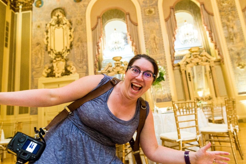One of the biggest challenges to photographing the wedding dress – we’re all pretty short! No worries – we’re notorious for climbing on things!
