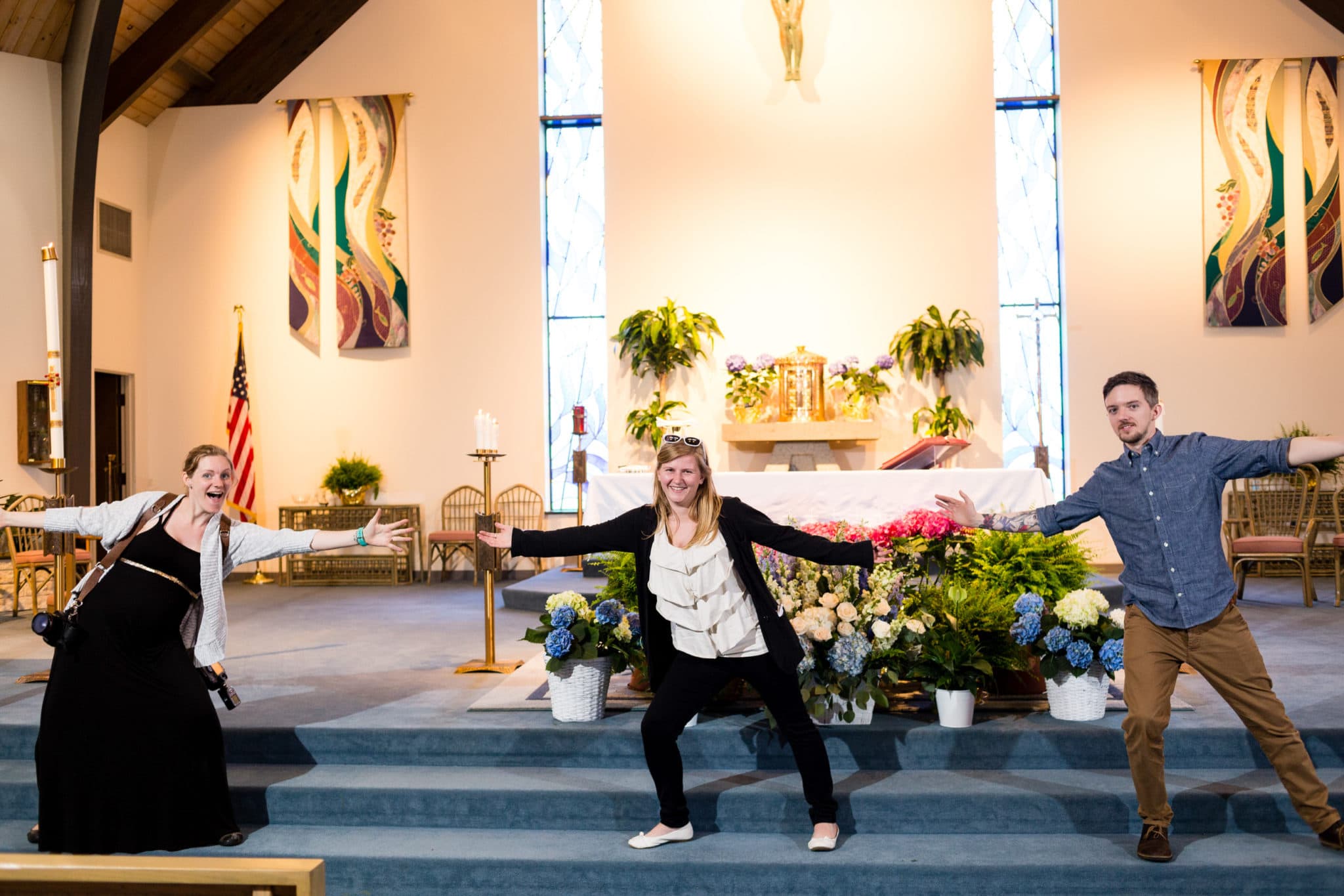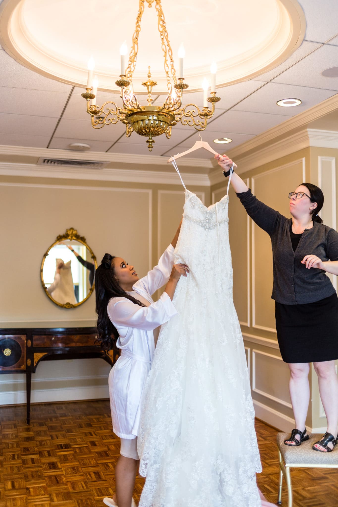 One of the biggest challenges to photographing the wedding dress – we’re all pretty short! No worries – we’re notorious for climbing on things!