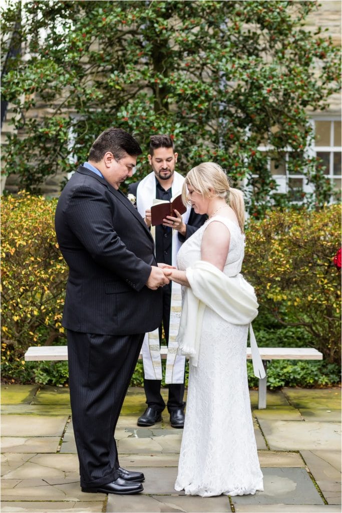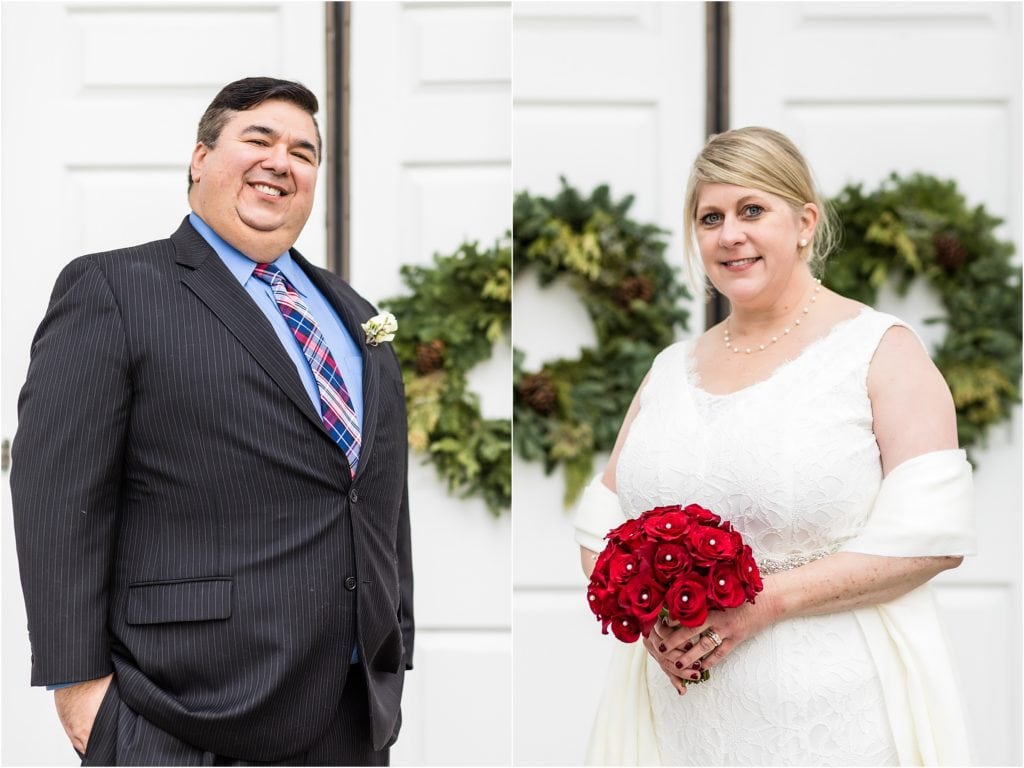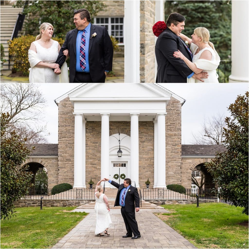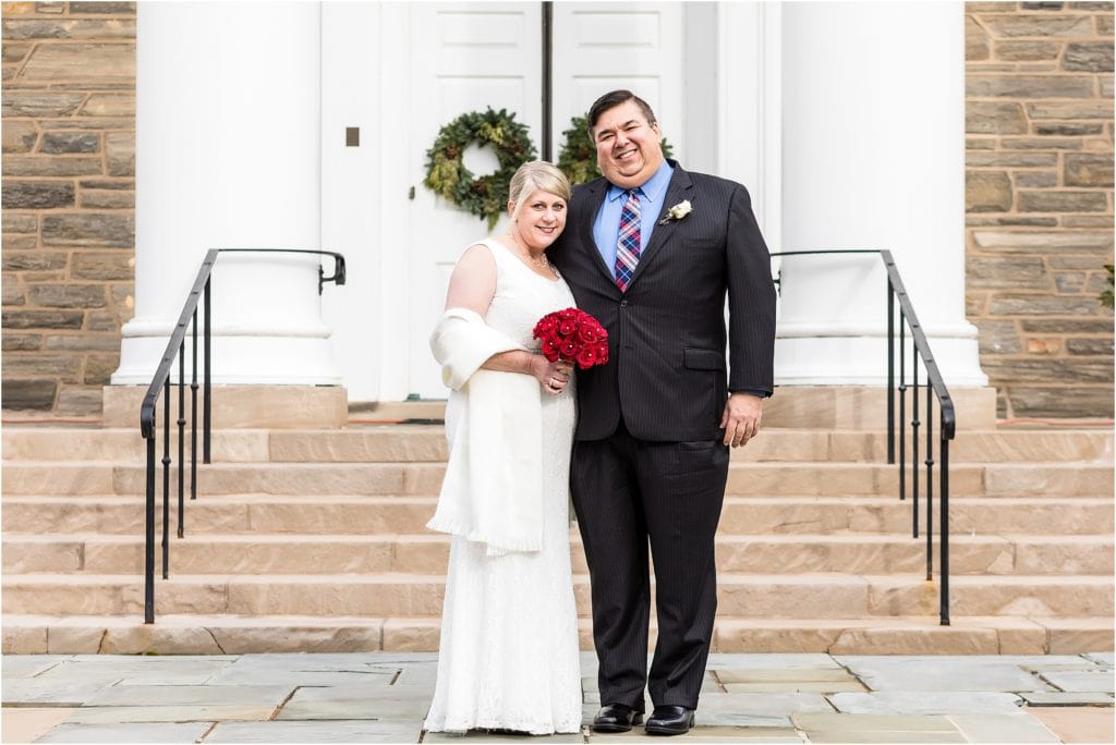 We met them for their intimate wedding in Chestnut Hill at a gorgeous church. The towering columns out front were beautiful, and the holiday decorations gave everything the warmth and glow of the season. Speaking of warmth, it was a very pleasant day for December. Mild with no wind, so everyone was about as comfortable as they could be outdoors in December.