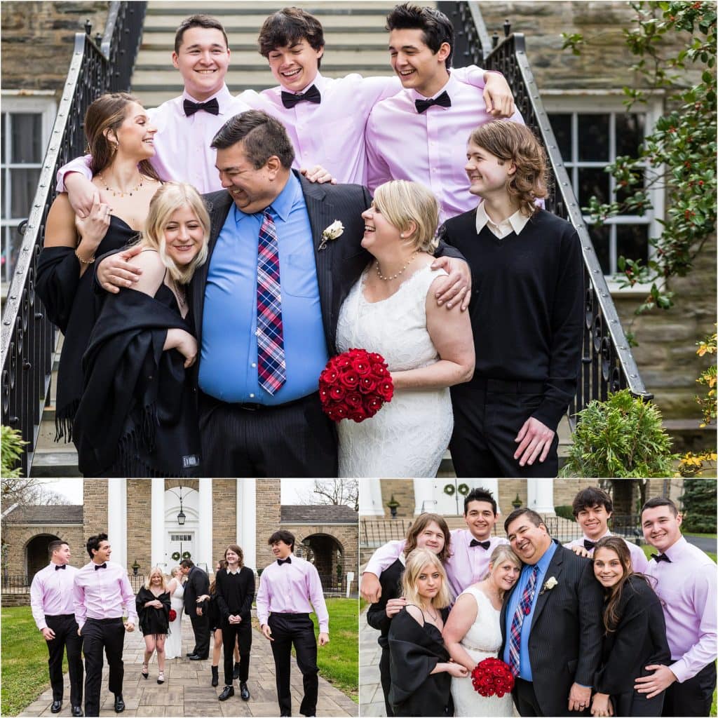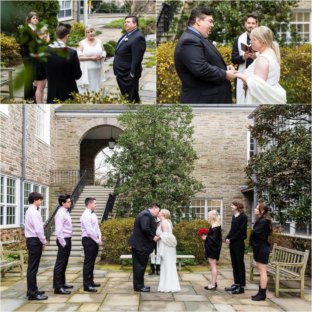 Then it was time for their intimate wedding in Chestnut Hill. The kids gathered around to watch their mom and their dad get married. They shared sweet vows and the kids all affirmed their love and their excitement for becoming one big blended family. They sealed the deal with rings and a great kiss and then it was official!