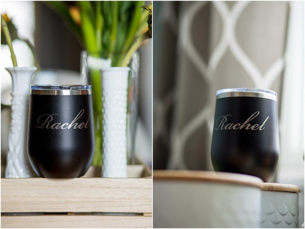 One thing that has impressed me about this tumbler from Groomschoice, besides the beautiful engraving, is how tight the seal on the lid is. I have something similar to this, and the lid does not seal as tightly to the container as this. And I spent a lot more on it. So, accidental spills are kept to a minimum, which is a huge plus for those fancy dresses everyone will be wearing on the big day.