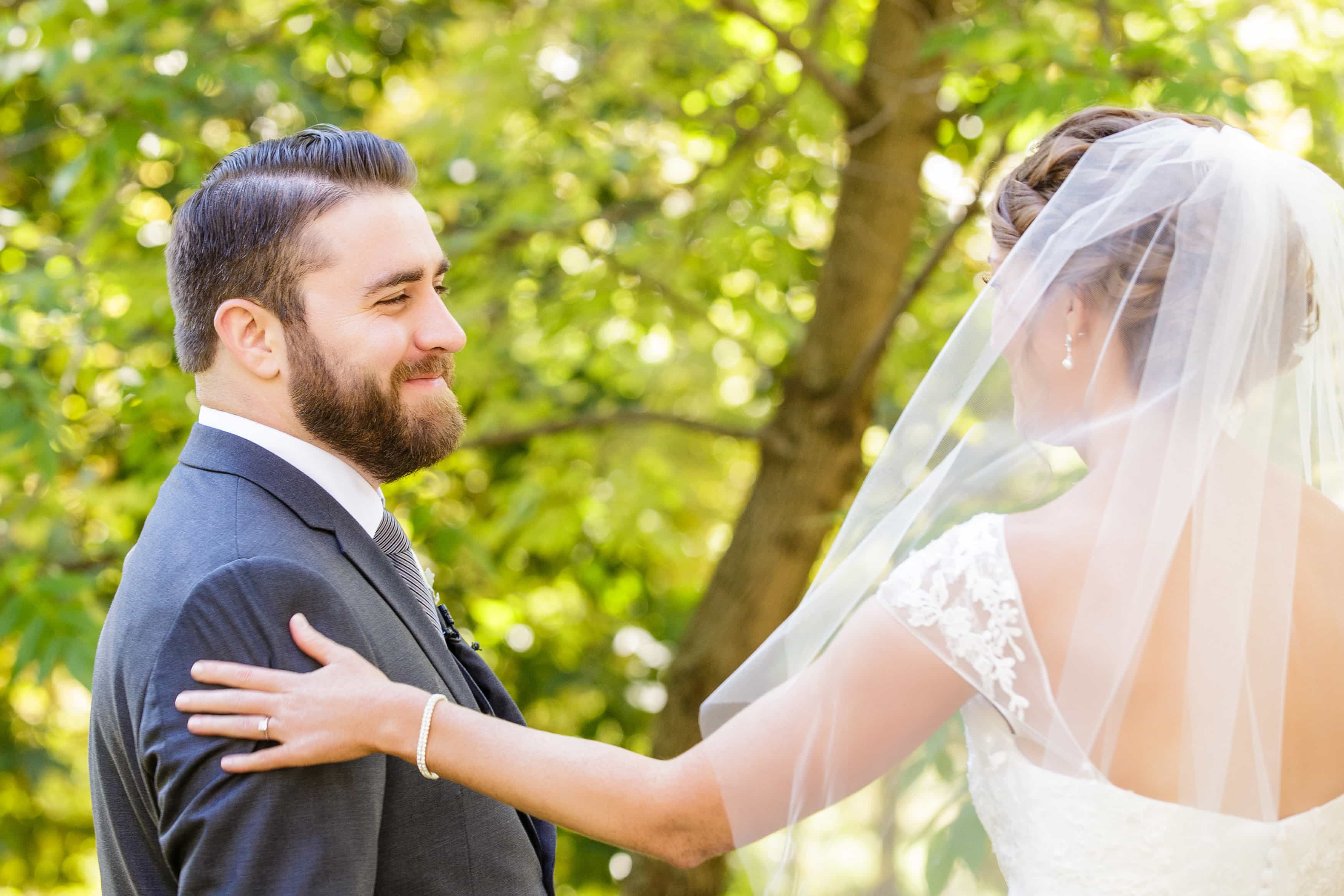 The greenery was still in full effect and we set the players on nature’s stage. Chris stood with his back to the path, and through the mottled sunlight, Kate floated across the ground to meet him. Some grooms grin wildly, some cry, Chris simply gazed. As he gazed at Kate, this demure smile sat lightly on his lips. That look communicated everything you could ever need to know about their love. He adores her. She adores him. Their love is a cut above. Wow. Kate reminisced that this was her favorite moment of the day.
