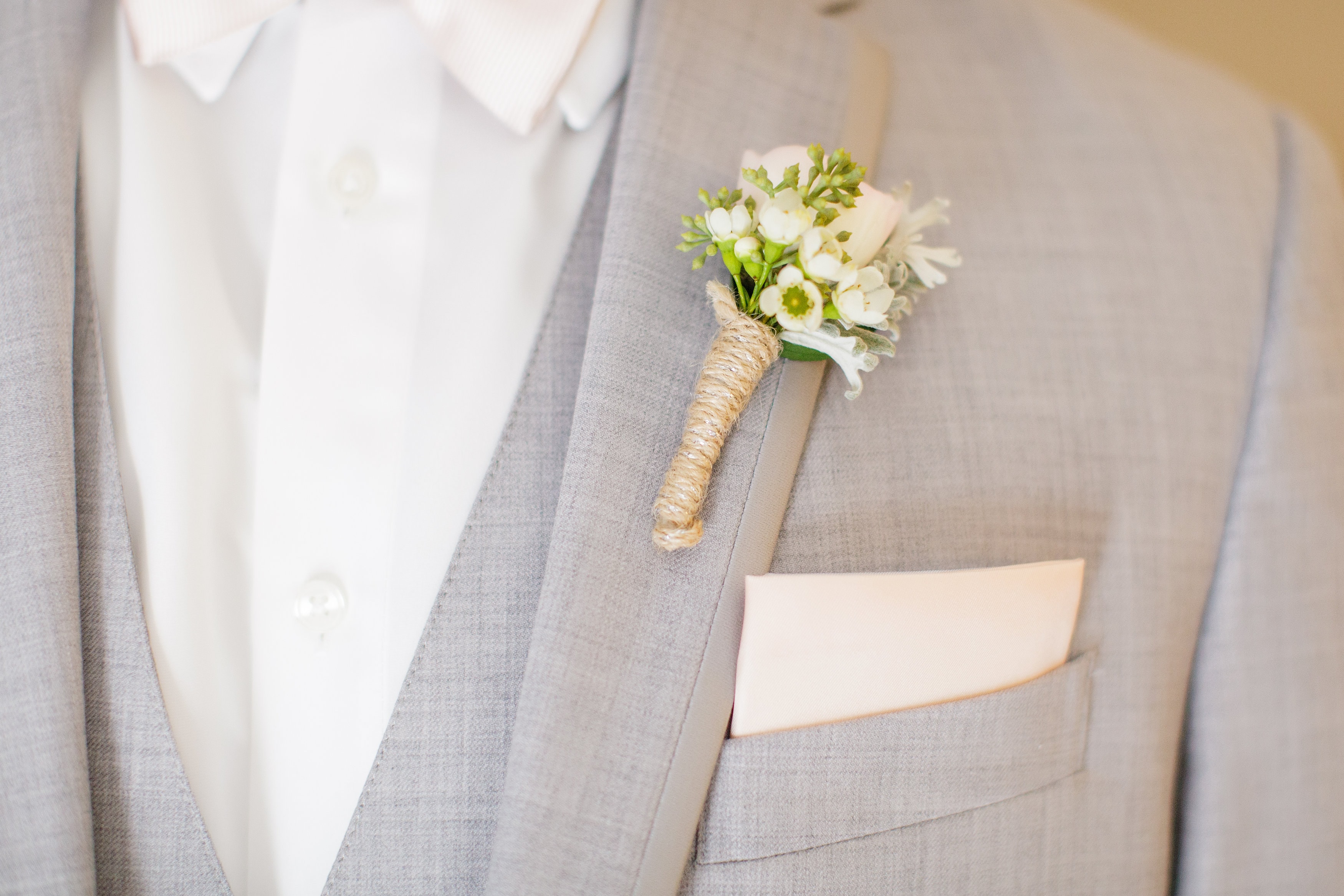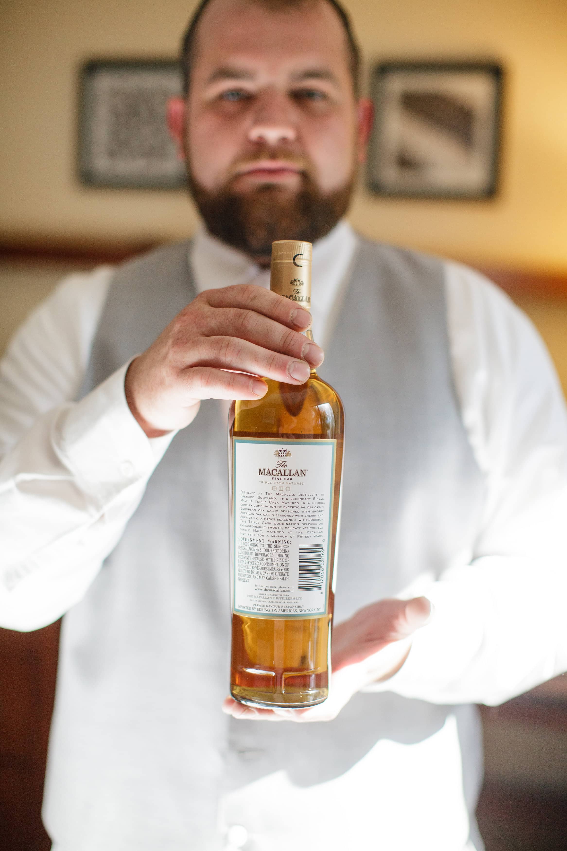 Meantime, Shawn and his band of guys were having a great time getting ready. Their gray suits with blush pink ties were elegant and had a timeless feel. Shawn proudly showed off the bottle of Macallan that they would be toasting with later in the evening. After each guy had laced up their special ordered Chuck Taylors, they piled out to the party bus and were off, after a brief stop at the bank, to get Shawn to his position at the end of the aisle to marry his long time love.