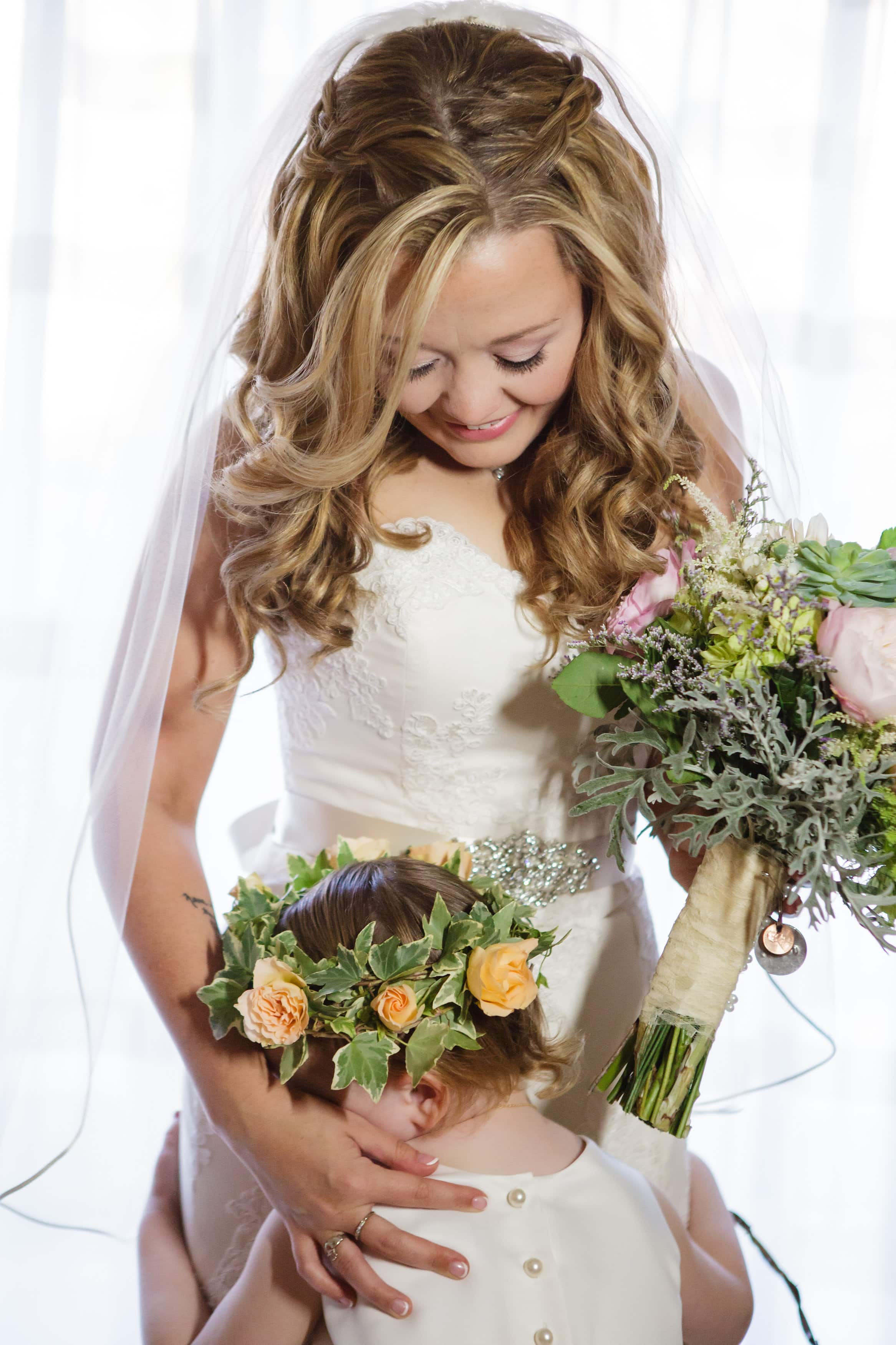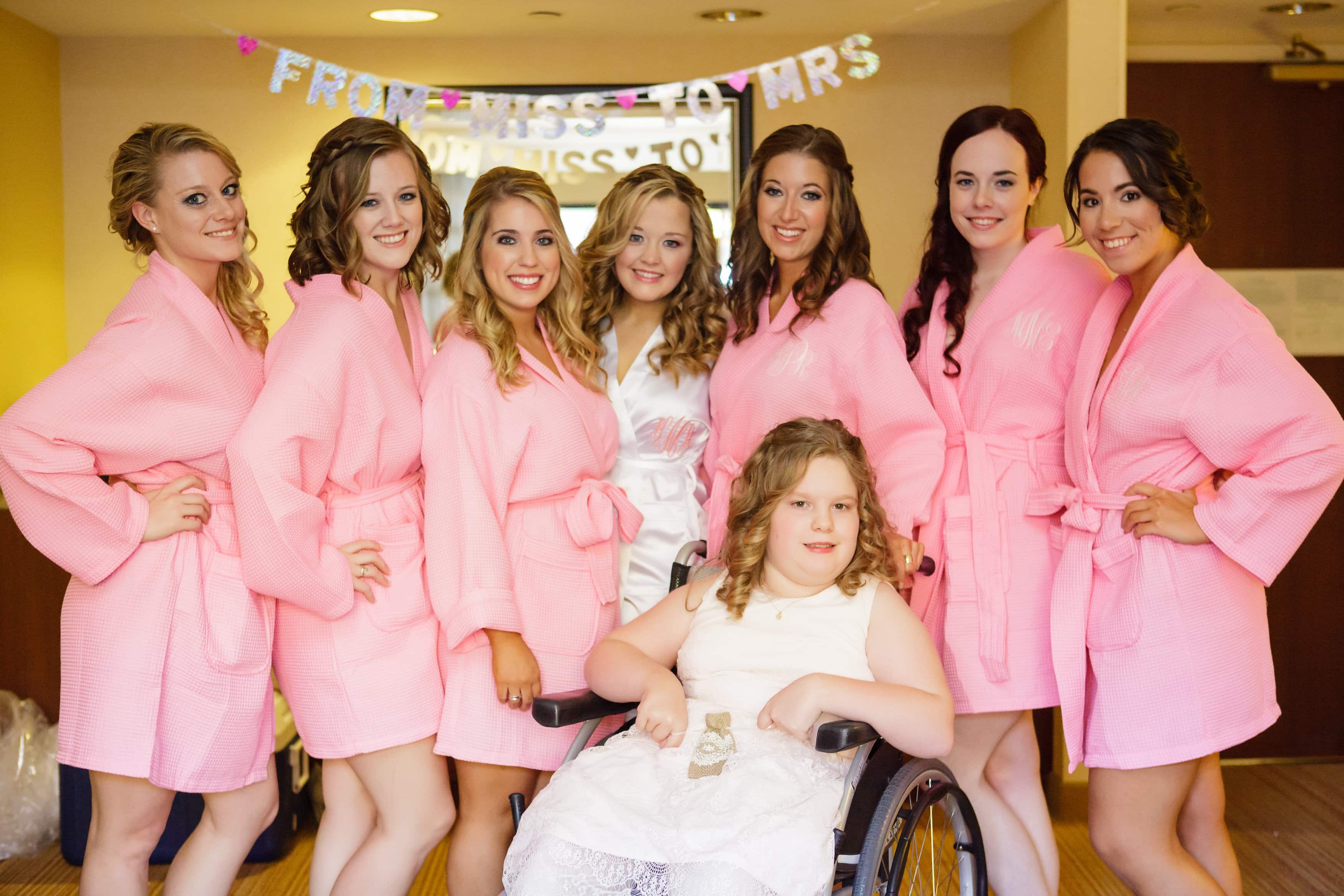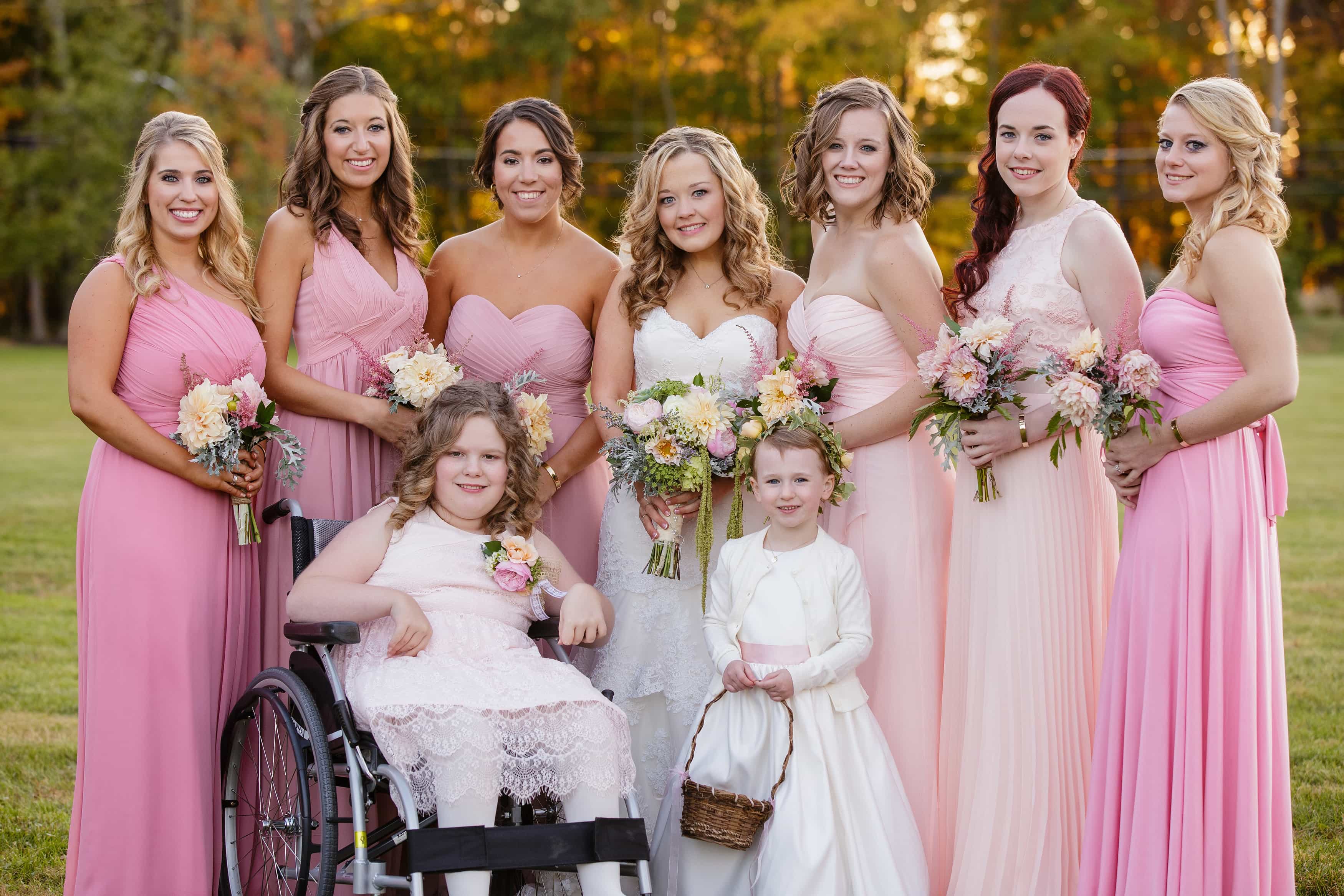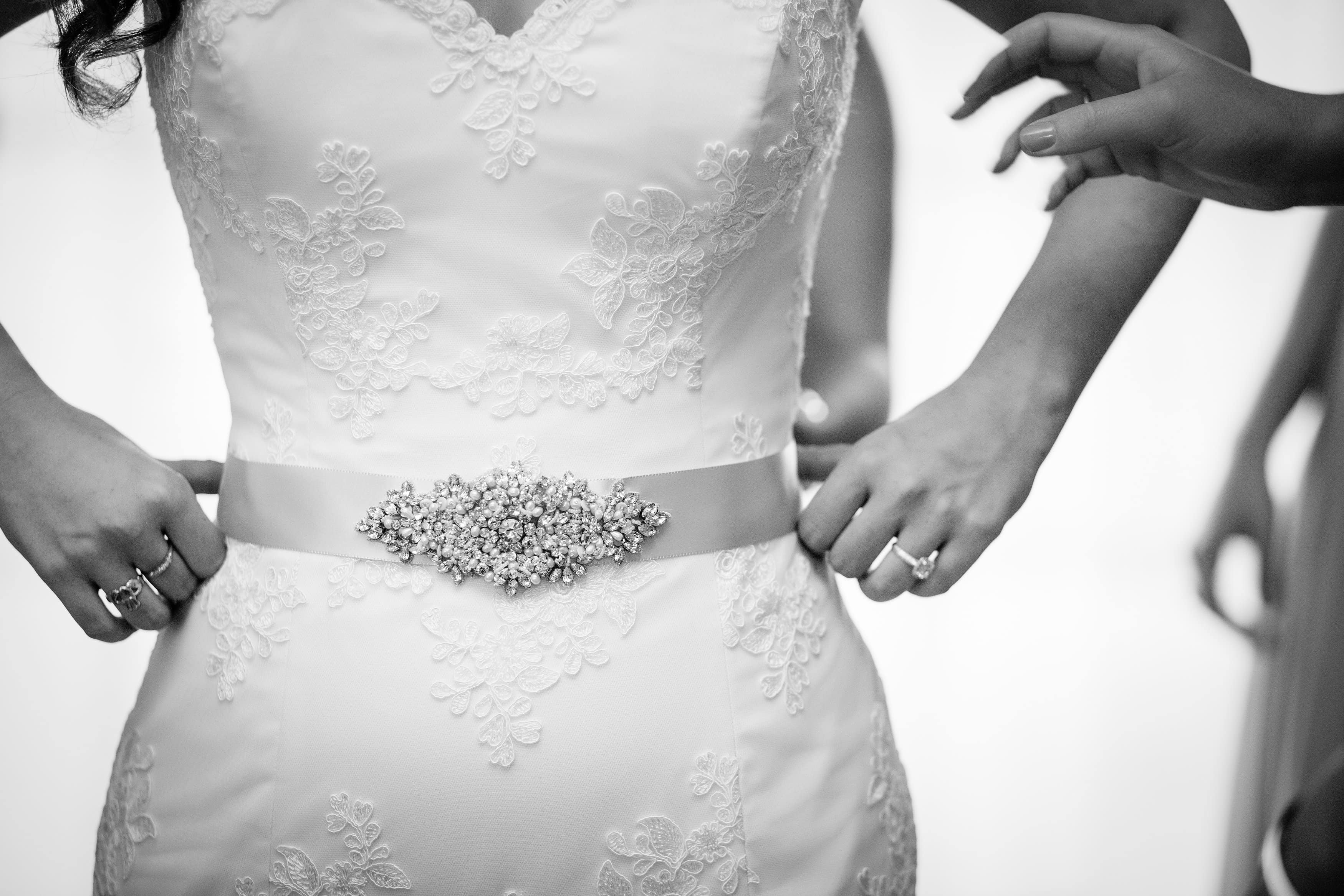 The unusually warm weather had continued late into the month, and it was a wonderful day with abundant sunshine when we arrived to photograph Kelly and Shawn as they got ready for their wedding. Kelly and her bridesmaids were all full of joy and nervous energy as they got hair and makeup done. Their beautiful blush pink dresses draped across the bed while Kelly’s JLM Couture gown designed by Lazaro hung over them were each unique to their bridesmaid. Her jewelry was laid out and her peachy pink Badgley Mischka shoes sparkled on the dresser. A little blue bow tied on the underside of her gown served as her something blue. The stunning bouquets stood in vases, awaiting the ladies who would carry them down the aisle. With a deep sigh of anticipation, Kelly stepped into her dress and her maid of honor zipped her up and tied the beautiful accent belt around her waist. The time had come, it was time to walk down the aisle and Kelly absolutely could not wait.