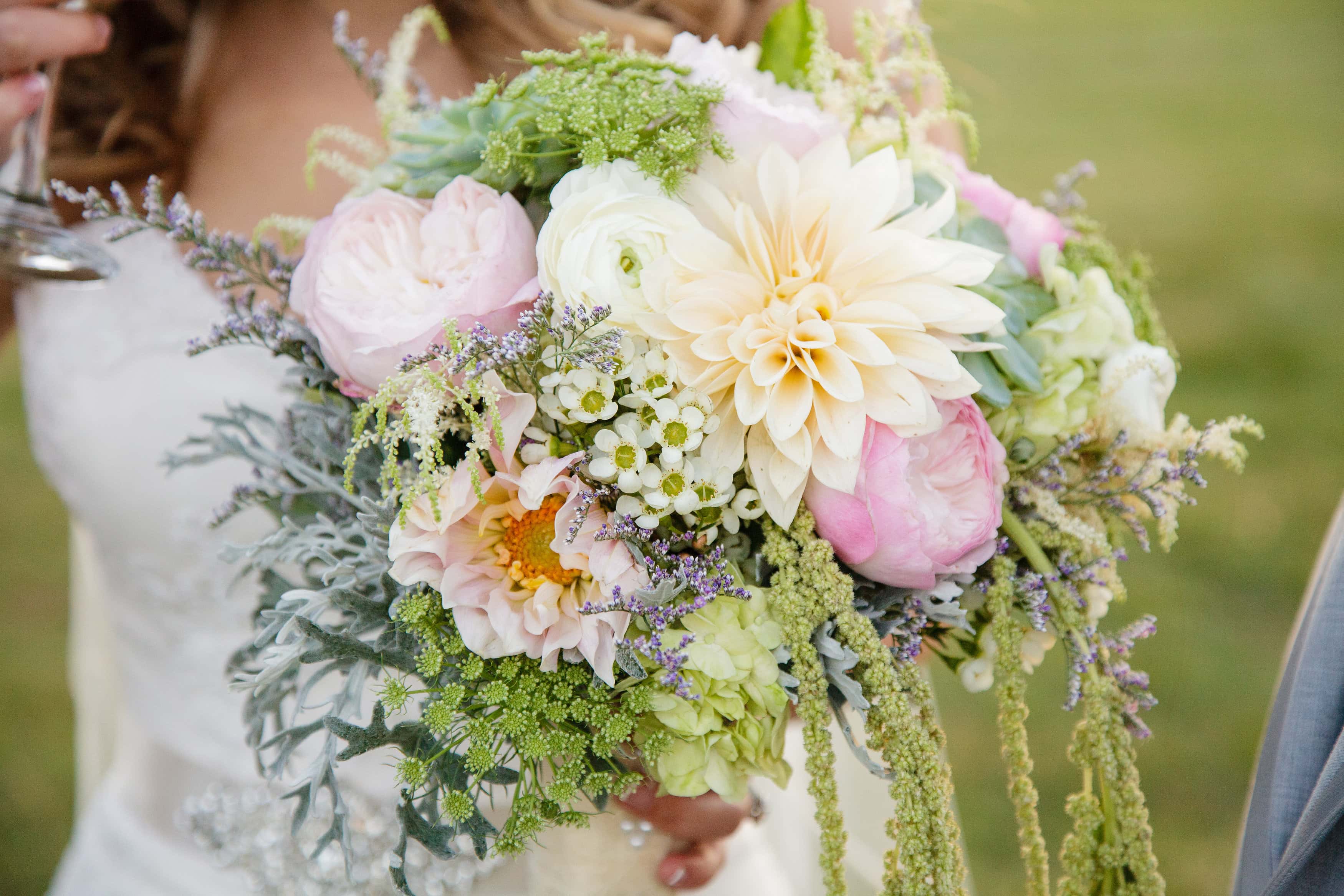 Their reception room was a beautiful barn and they had decorated it beautifully. With a rustic romantic theme, there were flowers everywhere, woodcuts, and mason jar favors set out on the bar. They had a naked cake, where the frosting is very minimal, and the string lights glowed softly overhead. When the music cranked up, everyone got on the dance floor. Kelly shared a special dance with her father and godfather and Shawn twirled his mother all about the dance floor. Kelly’s niece caught the bouquet and everyone had a wonderful evening celebrating the love of these two beautiful people. Kelly was even kind enough to send a centerpiece arrangement home with each member of the AGP team that night. We cherished those flowers long after they wilted. This wedding will remain with us for a long time.