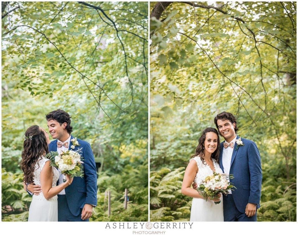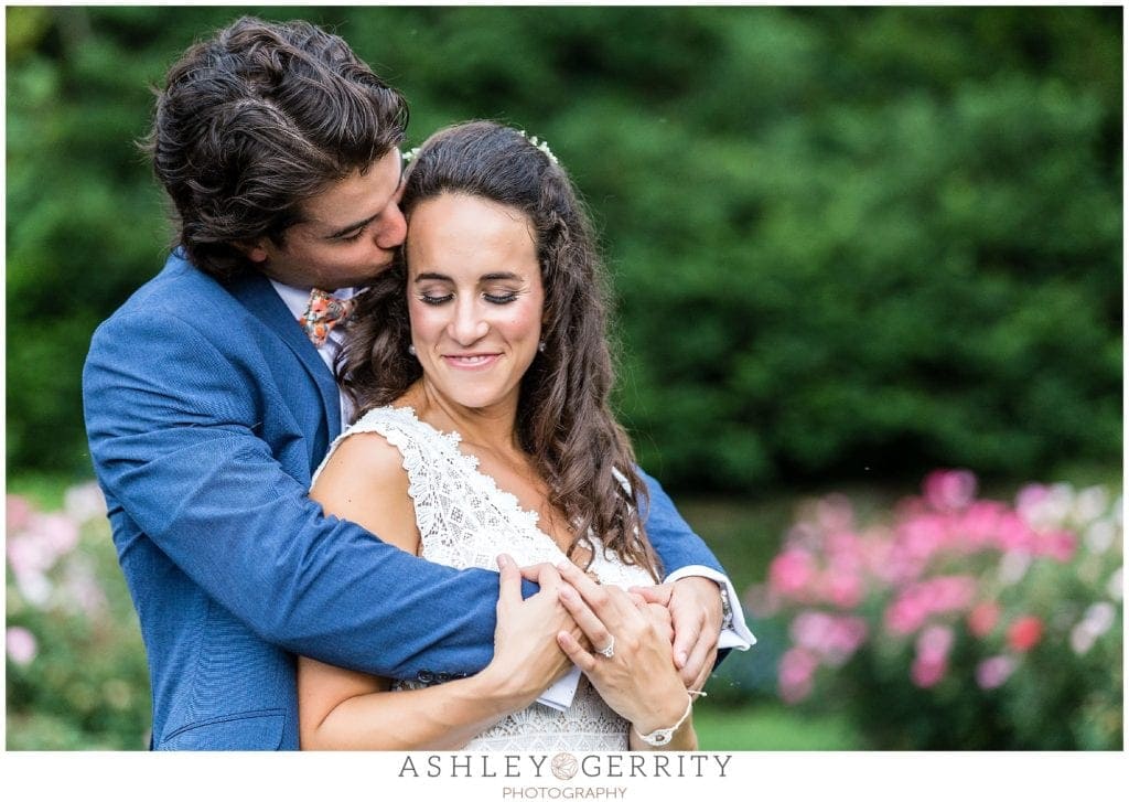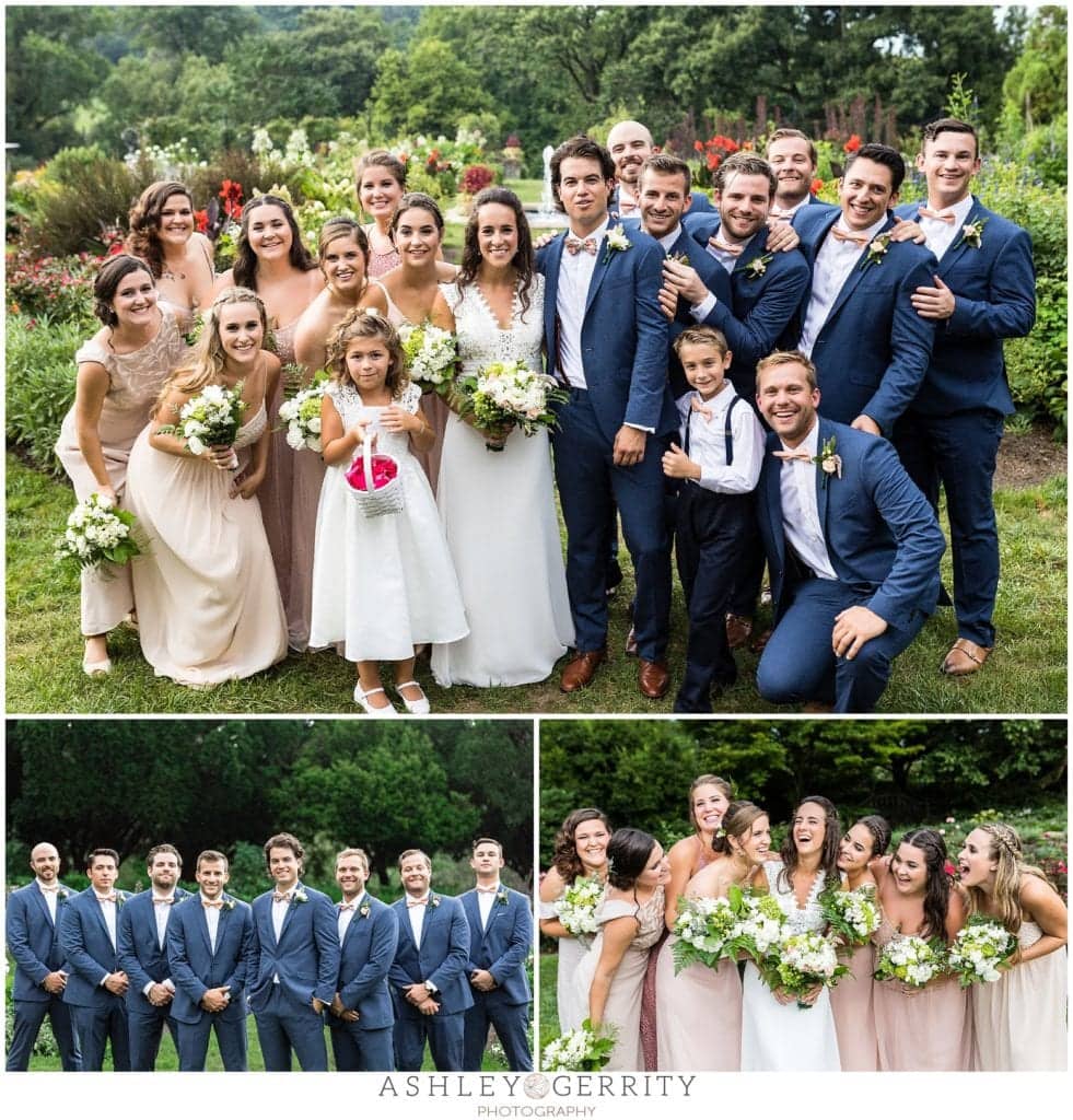 Finally, we all headed over to Morris Arboretum for their first look and portrait session. It was a perfect summer day to explore the grounds at Morris Arboretum, which are worth a visit on any day! Kate & I took Jordan to their favorite cabin in the woods where we captured their first look and started their portrait session. We wandered through fields of lavender and joined up with their wedding party at the rose garden.