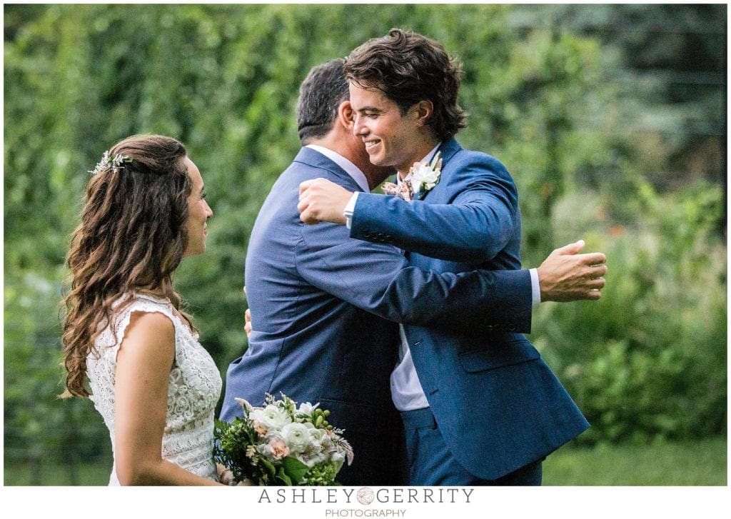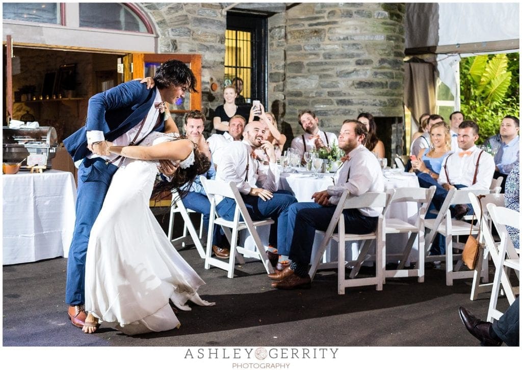 Dark clouds were starting to gather as we headed over to the gardens for Jordan & Pete’s wedding ceremony, but nothing could put a damper on their joy. One of the biggest appeals to having a Morris Arboretum wedding was the outdoor ceremony options, so we pushed forward and ignored the impending thunder. As soon as Jordan & Pete began their vows, the heavens opened up and a drenching rain hit. I quickly put one camera under DJ Bob’s tarps (just in case anything happened in the rain) and pushed into the rain to capture some of the most magical ceremony images of the season! Jordan & Pete danced in the rain together and into their life as husband & wife.