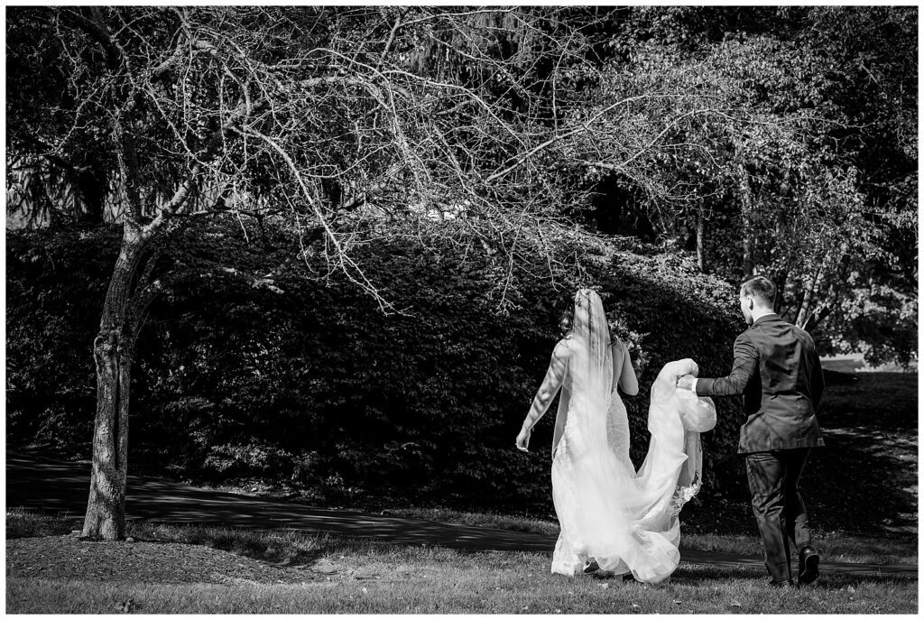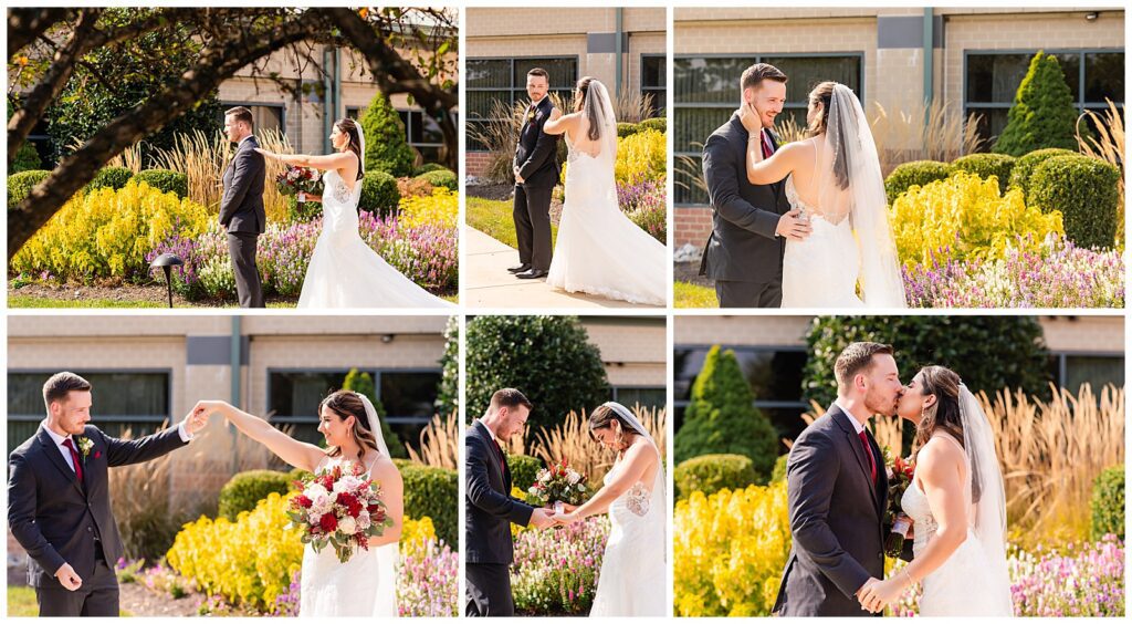 Their first look among the flowers was a sweet sight as Sean admired his beautiful bride. He took her by the hand and spun her around to take it all in before planting a few kisses and heading off to explore the grounds of the Desmond Hotel. As summer began to fade, the surrounding trees were the perfect blend of lively and colorful to encapsulate their newlywed-to-be bliss.