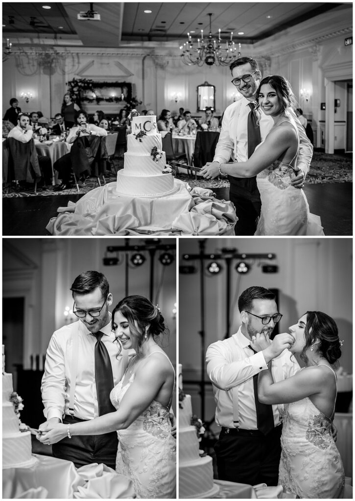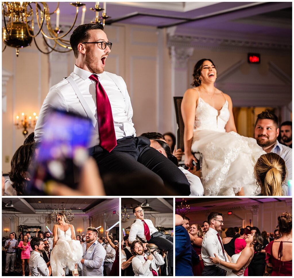 Marisa & Sean cheered and celebrated through their grand introduction as guests welcomed the newlyweds for their first dance as husband and wife. After settling down for speeches, sustenance, and parent dances, the cutting of the cake marked the start of the celebration on the dance floor. Starting off strong with the bride and groom lifted over our heads for the Horah, they danced right up until the end of their wedding at The Desmond Hotel.