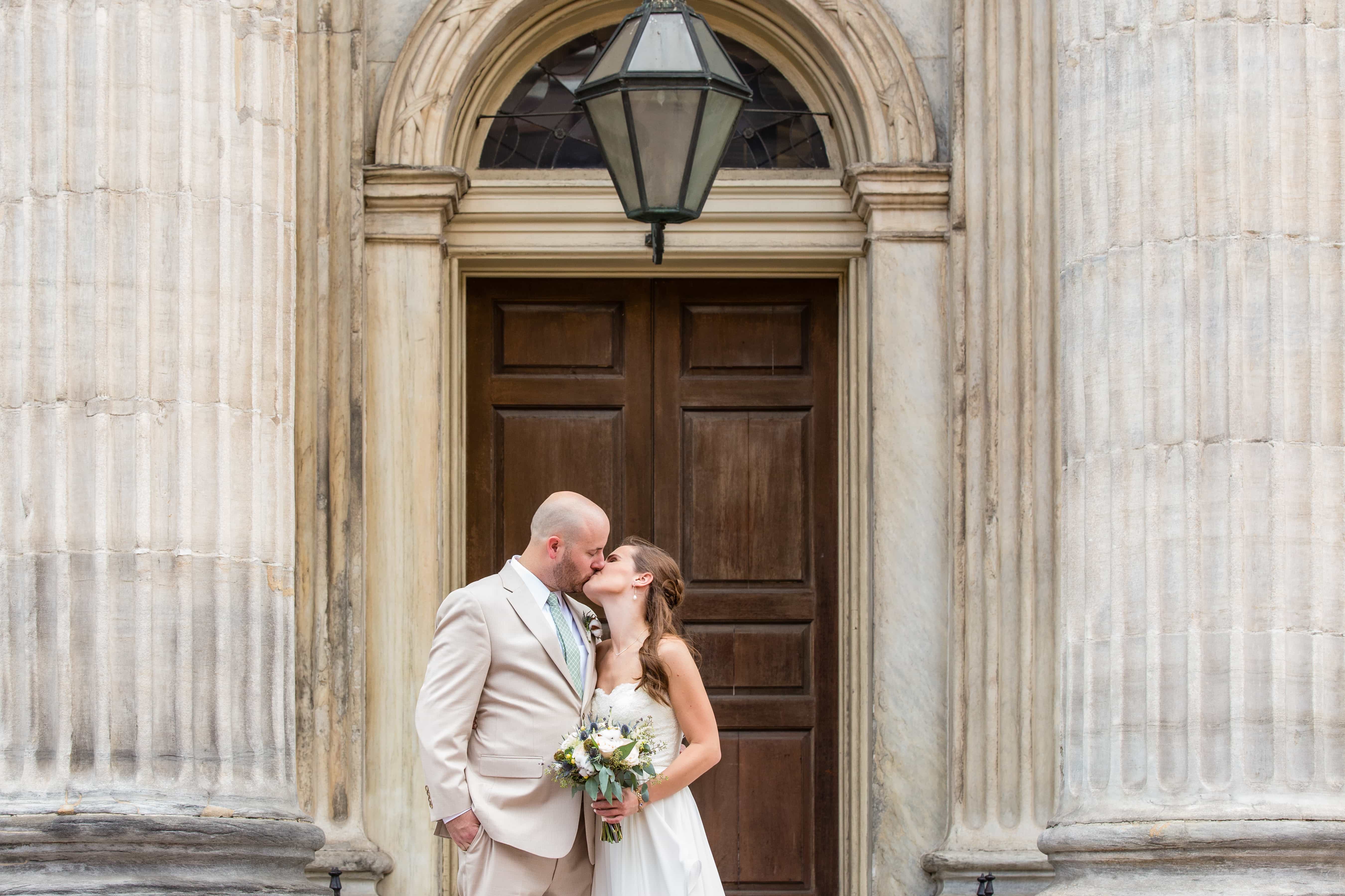 Then we toured Old City Philadelphia with stops at the First National Bank, Race Street Pier, and the Merchant Exchange Building for photos of the bridal party and the lovely bride and groom. We enjoyed the warm summer day and when we were finished we were excited to get into the air conditioned ballroom for the ceremony and reception.
